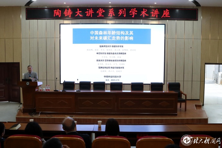 ▲陈镜明教授作题为《中国森林年龄结构及其对未来碳汇走势的影响》学术报告