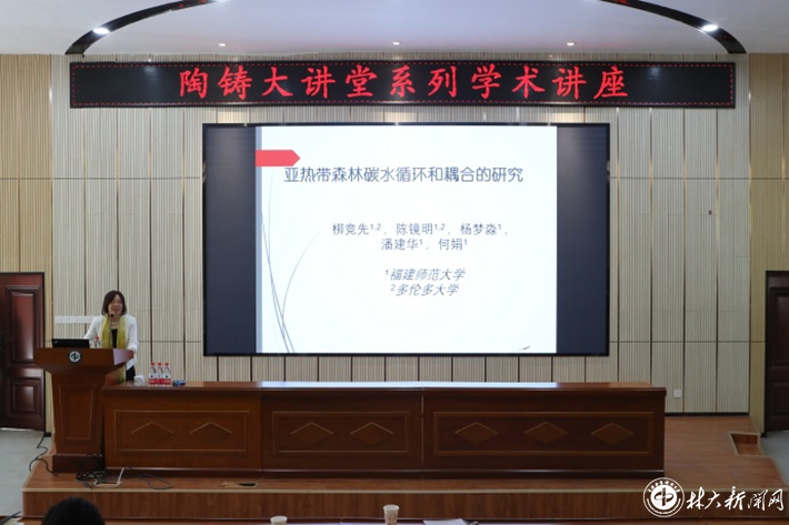 ▲柳竞先教授作题为《亚热带森林碳水循环和耦合的研究》学术报告