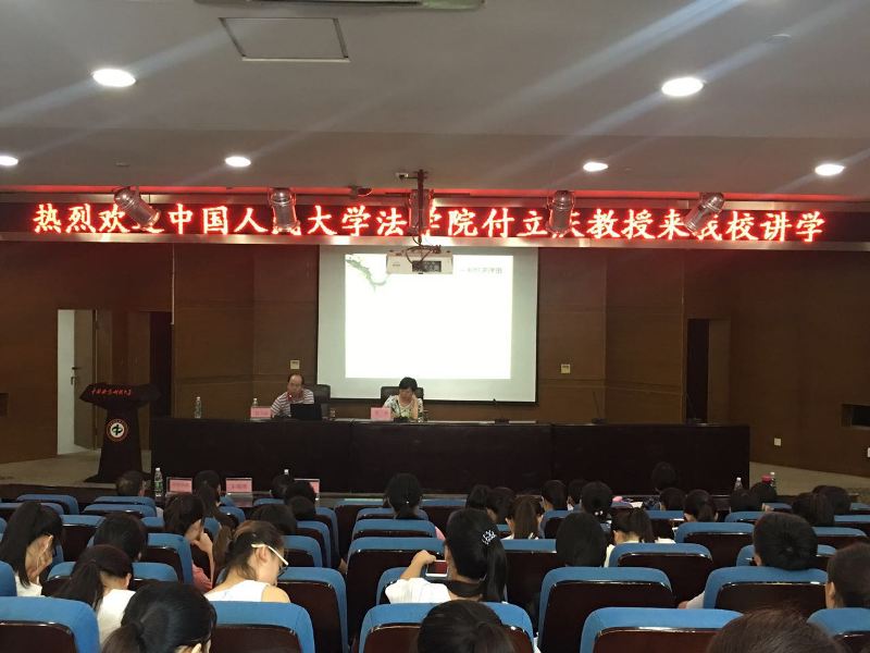 讲座由社科处处长蒋兰香教授主持,政法学院院长周训芳教授、政法学院党委书记朱朝晖、副书记欧阳弘毅以及法学教研室相关教师听取了讲座。