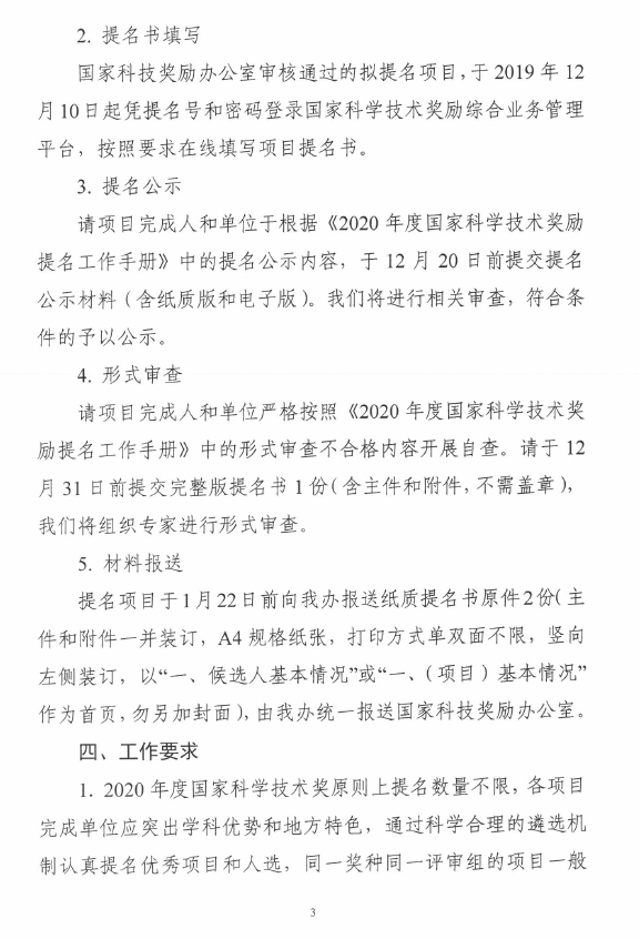 3. 12月30日下午下班前提交完整版提名书1份(含主件和附件),用于省科技厅奖励办形式审查。
